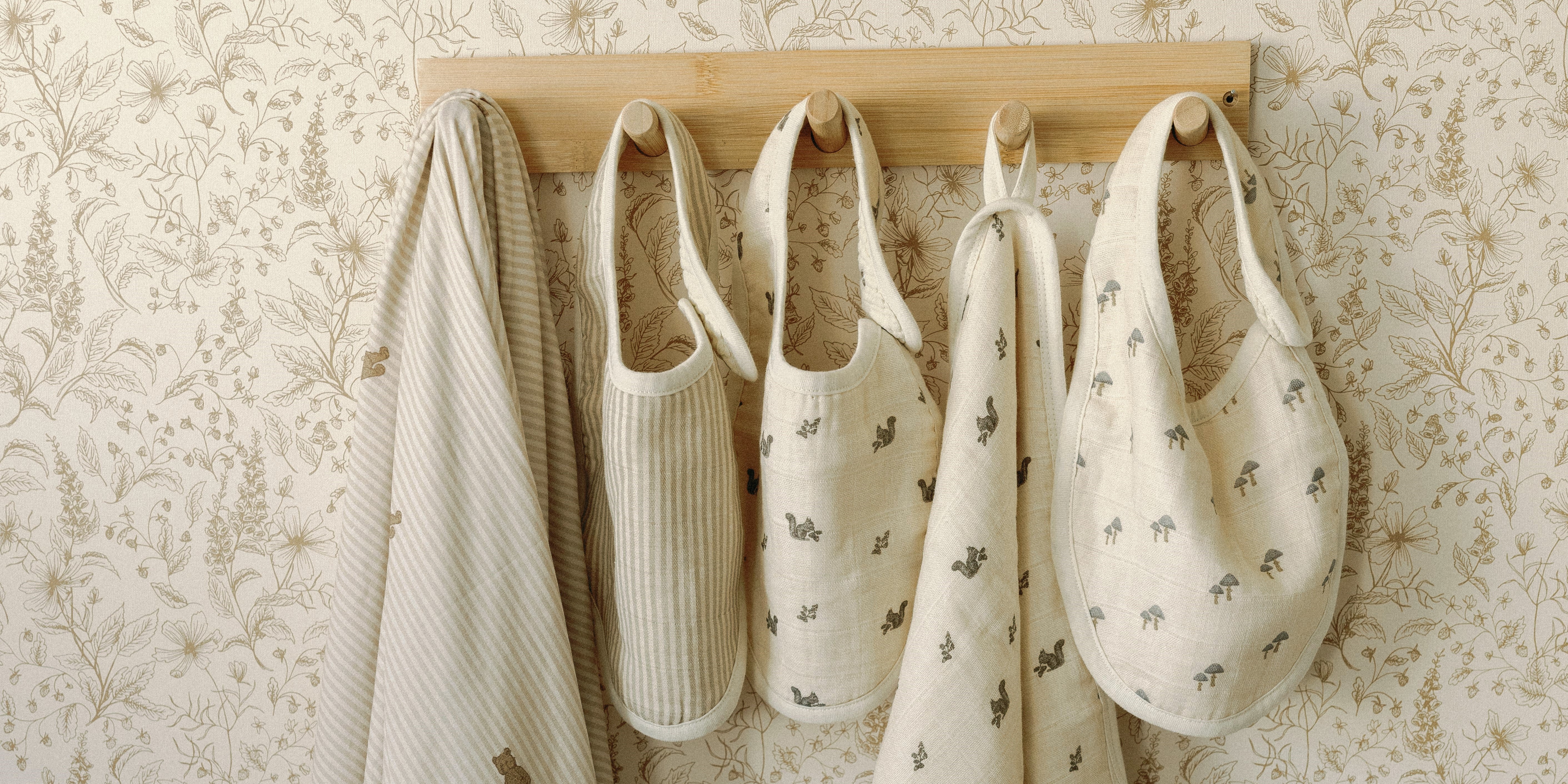 'Squirrel' & 'Mushroom' - Premium Muslin Bib 2-Pack