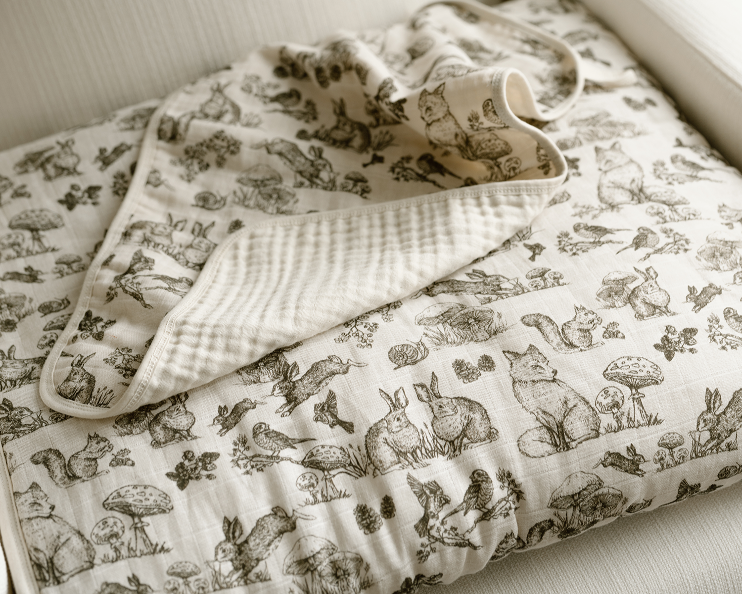 'Woodland' Nursery - Premium Muslin Crib Quilt & Sham