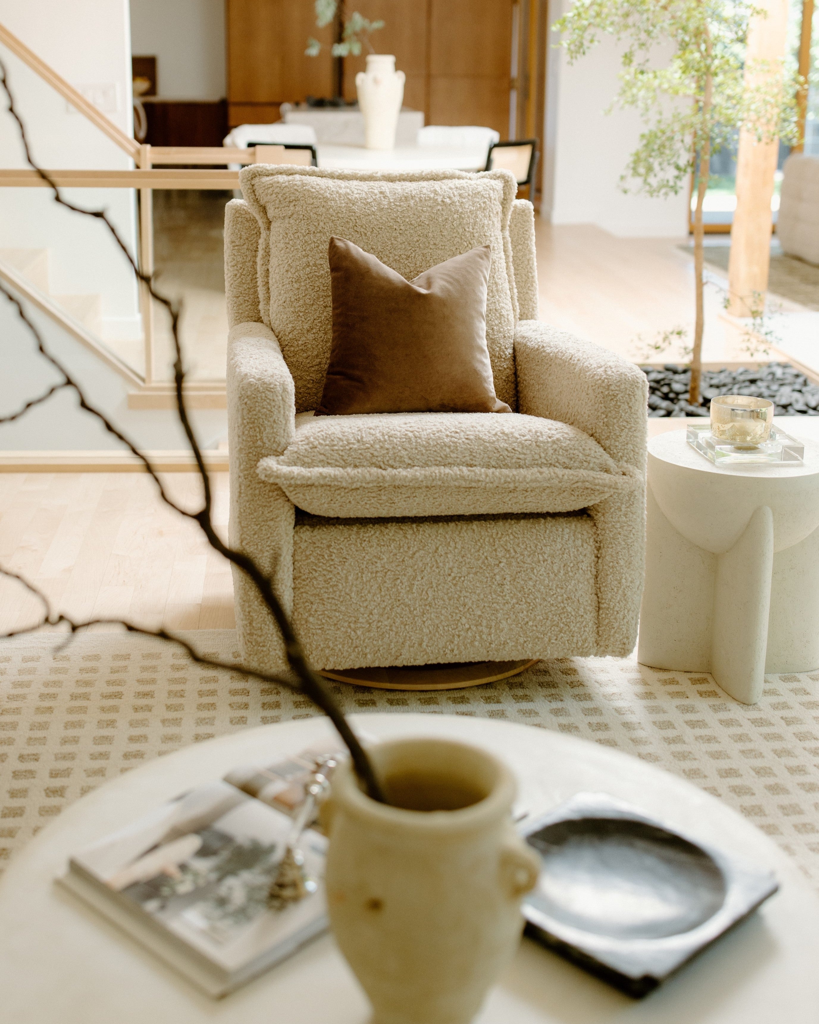 Flynn – Gliding Swivel Nursery Recliner - Sheepskin Cloud